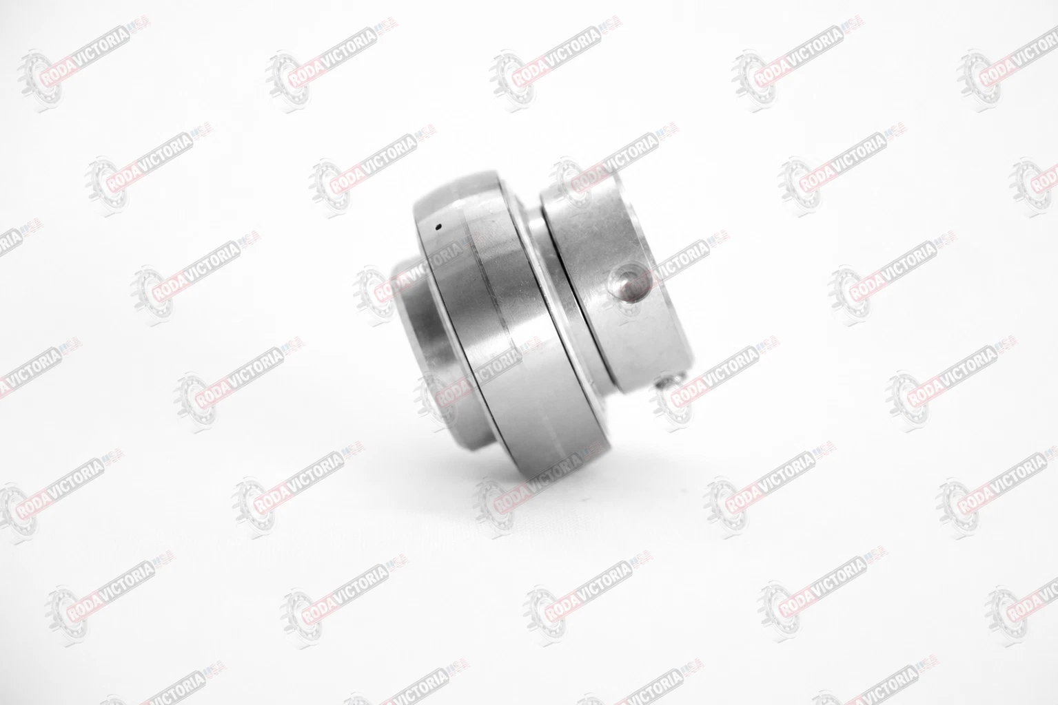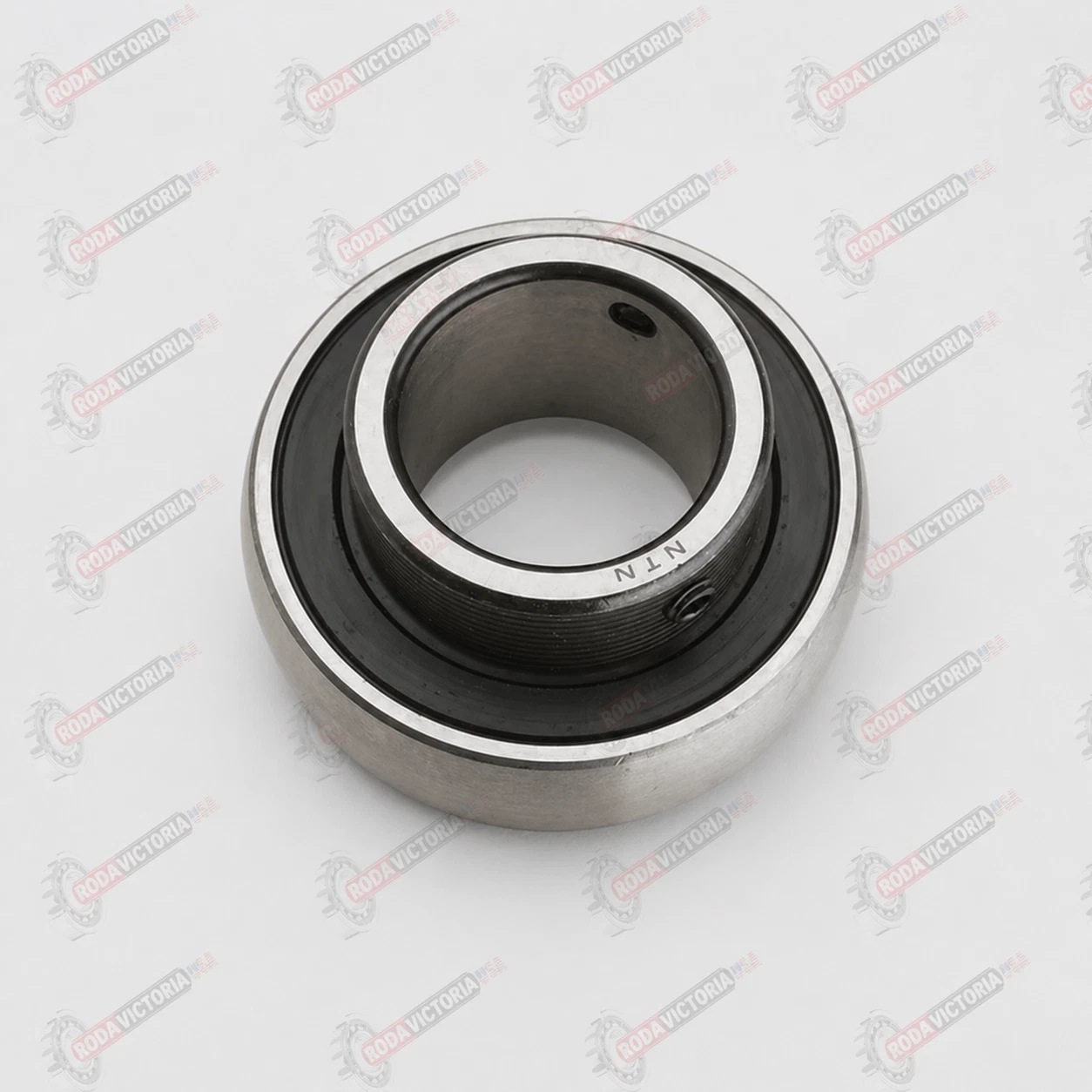 The NTN AS201-008 D is a radial insert ball bearing with a spherical outer ring, designed for mounting in housed bearing units and similar applications. It features a cylindrical bore with threaded pins for secure shaft locking, plus a widened inner ring on one side for added stability.